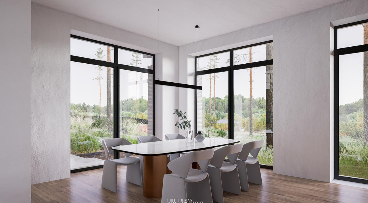 Создание и размещение на участке двухэтажного загородног о дома на 400 кв.м в стиле прерий (Райта) для семьи из четырех человек.